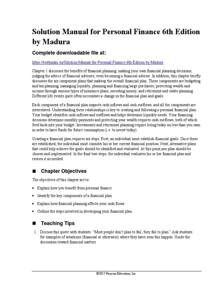 personal finance 6th edition by madura solution manual table of content 1. This listing is for personal finance (pearson series in finance) this edition is basically identical to the isbn 0135173094 and 0135639549 and 0134989961 save your money and buy the early edition! Carlson personal finance after 50 for dummies, 2nd edition (9781119543633) was previously published as personal finance after … book. Save up to 80% by choosing the etextbook option for isbn: Chapter 2 planning with personal financial statements.